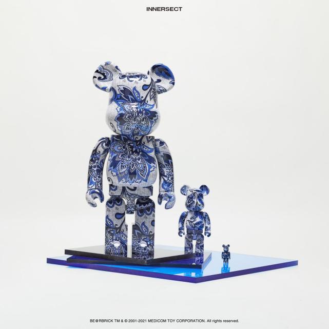 江南烟雨使人如痴如梦,而在江南中,乌镇的小桥流水人家,也一直是烟雨气息文化的代表,其传统手工技艺——蓝染布,作为首批成功申报浙江省非物质文化的瑰宝,在一千三百多年前就开始发展并一直保存至今,本次INNERSECT将蓝染印运用在BE@RBRICK千秋款上,也是想要把中国传统江南的美艳不可方物作为特色中国元素之一呈现给大众。
