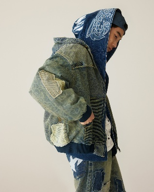 2025秋冬系列核心亮点是首次发布的CLOUD CAMO图案,这一突破性设计将蓝染丹宁面料与传统刺子绣工艺相结合。CLOUD CAMO以象征万物共生的传统唐草纹为灵感启发,将蕴意永恒生命力的古典艺术与BAPE®标志性的迷彩元素无缝融合。