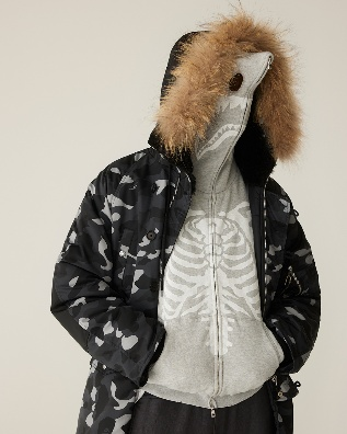 主打单品涵盖鲨鱼拉链帽衫和牛仔夹克,将CLOUD CAMO图案演绎至全新高度。最受瞩目的横须贺夹克加入了金银线刺绣工艺与传统日本火元素,为工匠技艺注入源自街头HIP-HOP文化基因,尽释BAPE®大胆无畏的设计理念。