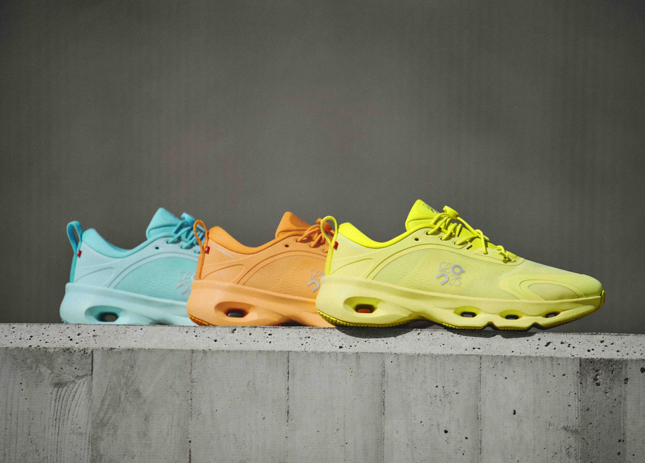 融合双方的专业技艺,Cloudsolo首度采用单一CloudTec®缓震云模块置于后跟,搭配由 Helion™超弹泡沫与灵活Speedboard中底构成的结构,为日常运动提供舒适与支撑。鞋面选用半透明技术网眼材质,并饰以LOEWE罗意威标志性扣件。可调速弹力鞋带设计与 LOEWE × On联名标识贯穿其间。配色涵盖松石绿、橙色与青柠绿等鲜明色款,同时亦提供多款中性调配色。本季同步焕新推出的LOEWE × On Cloudtilt运动鞋新增牛仔灰与牛仔蓝两种全新配色,以针织袜式鞋面、橡胶鞋头与品牌标识织带后跟设计呈现。