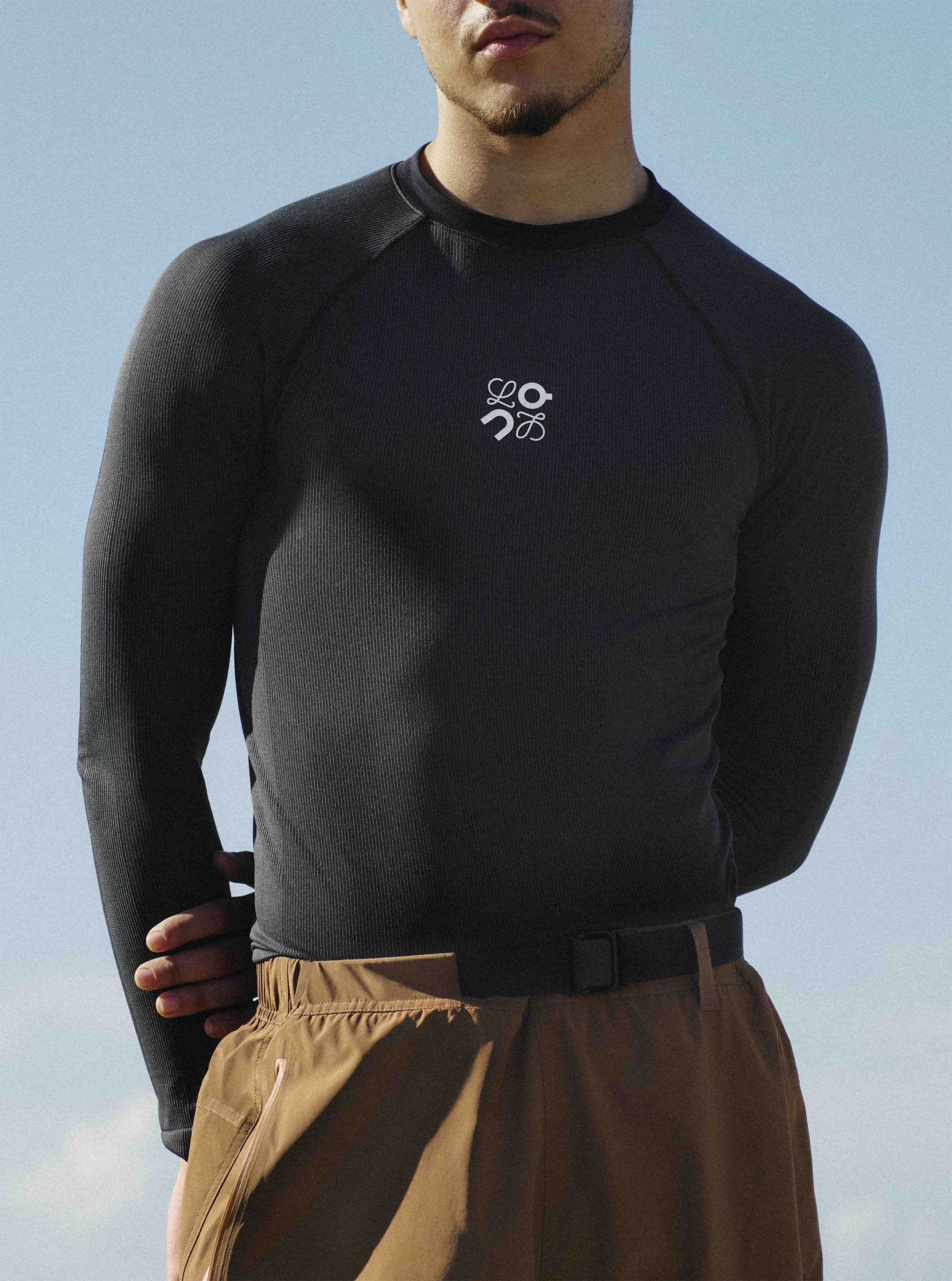 LOEWE罗意威 × On昂跑2025秋冬系列聚焦高性能科技,立足日常生活节奏,打造应对城市多元生活的着装方案。灵感源自于LOEWE罗意威秀场成衣的植绒防水夹克,到工装裤与标志性外套单品设计,皆向都市生活的速度与能量致敬:应对高峰时段的喧嚣、拥抱骤雨来临的兴奋,抑或享受城市一隅的片刻宁静,全新联名系列服饰都可随城市的律动自由切换。基础单品如运动内衣、T恤、紧身裤与机能短裤亦悉数登场,部分款式加入了由两大品牌联合开发的全新结构条纹细节。