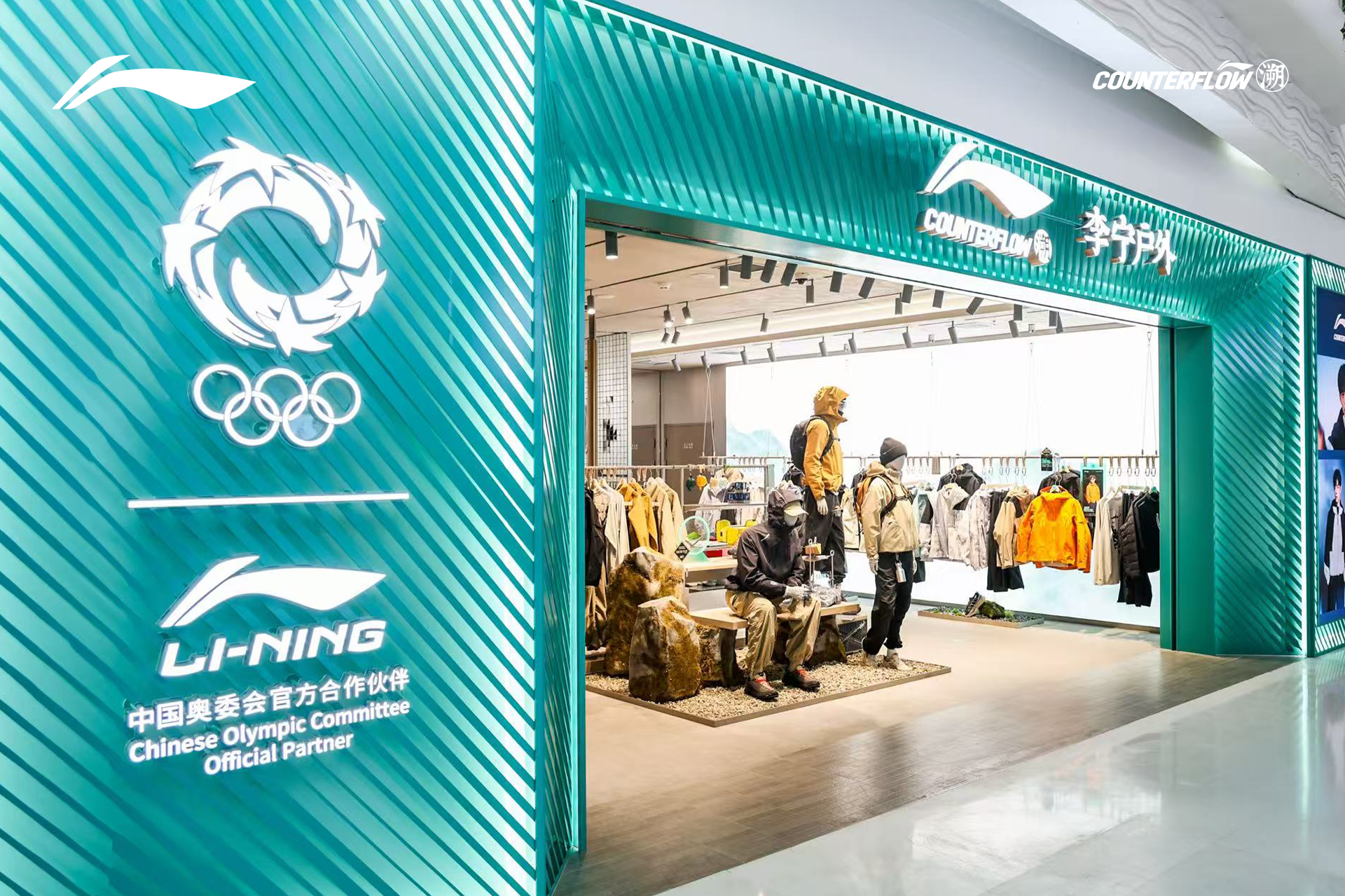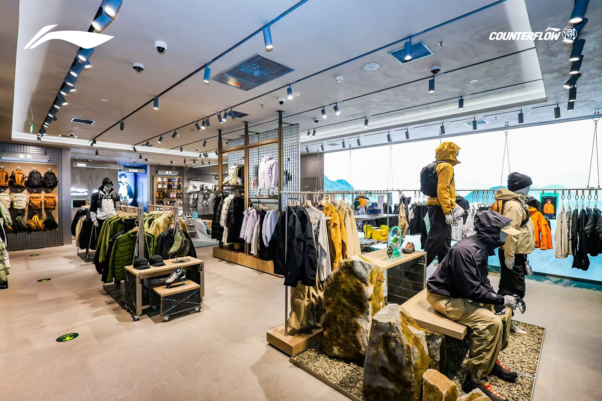 2025年11月29日,李宁品牌旗下专业户外品类——李宁户外「COUNTERFLOW溯」首店于北京朝阳大悦城正式亮相。秉持“追本溯源,逆流而上“的理念,首店以户外防护为基石,呈现独具东方山水意境与城市时尚审美的户外美学空间,为都市人搭建 “离城近野” 的新连接。